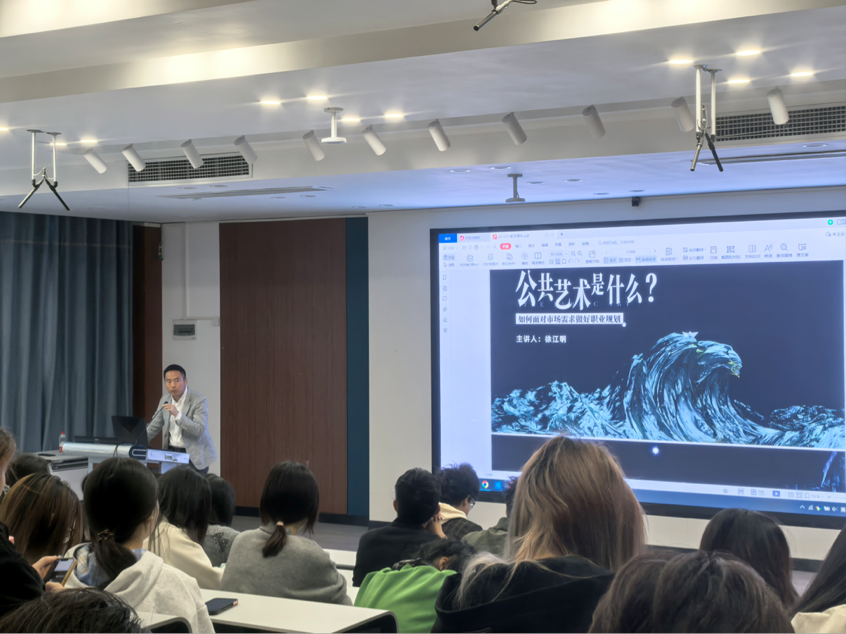 2024年11月1日8:30,TapTap点点在A12教学楼105教室成功举办了一场名为《公共艺术是什么?——如何面对市场需求做好职业规划》的职业规划指导讲座。本次讲座由武汉文萃景观艺术工程有限公司及上海朔土环境艺术有限公司的创始人、总经理徐江明先生主讲,2024级公共艺术2班和3班,2023级公共艺术、2021级公共艺术班员工全部参加。