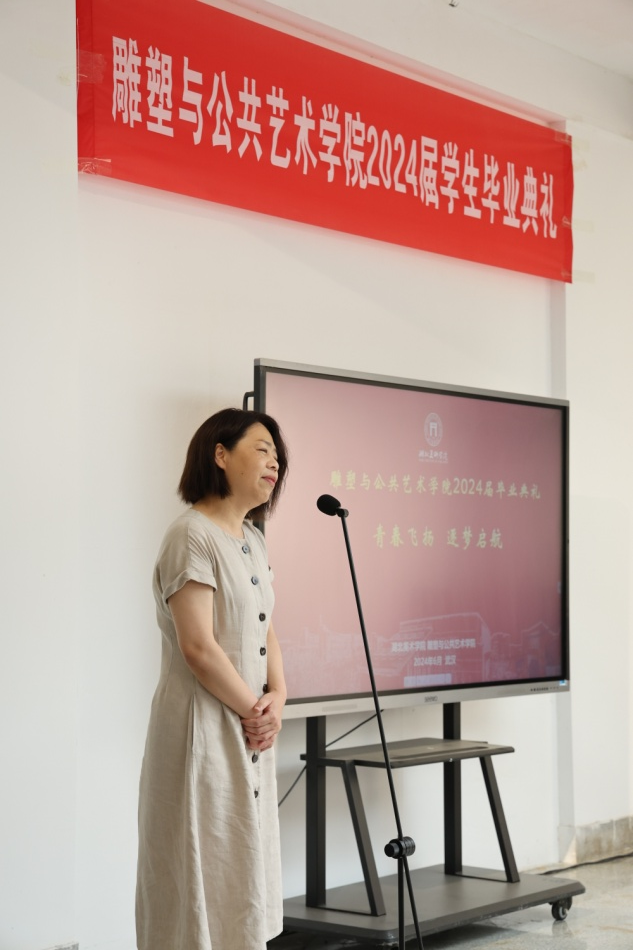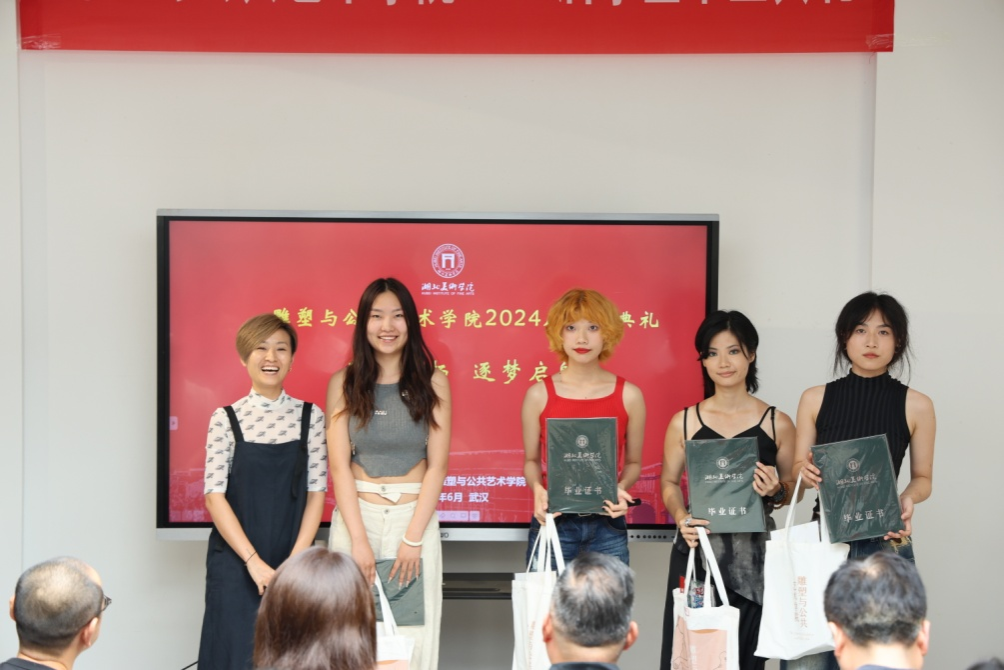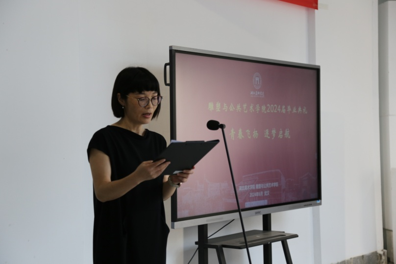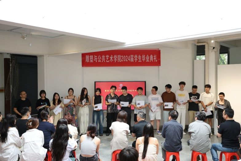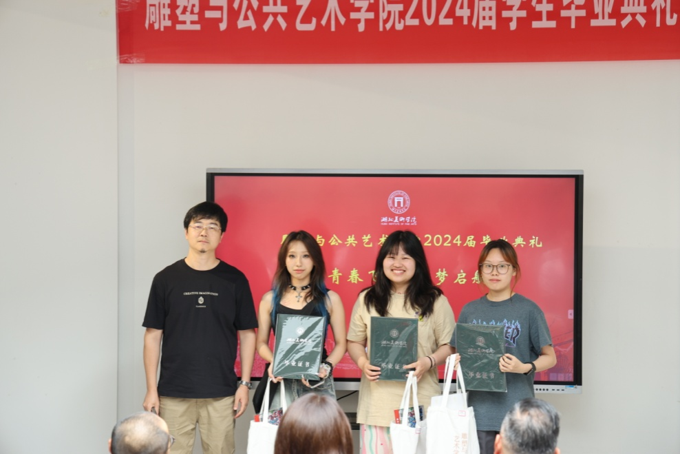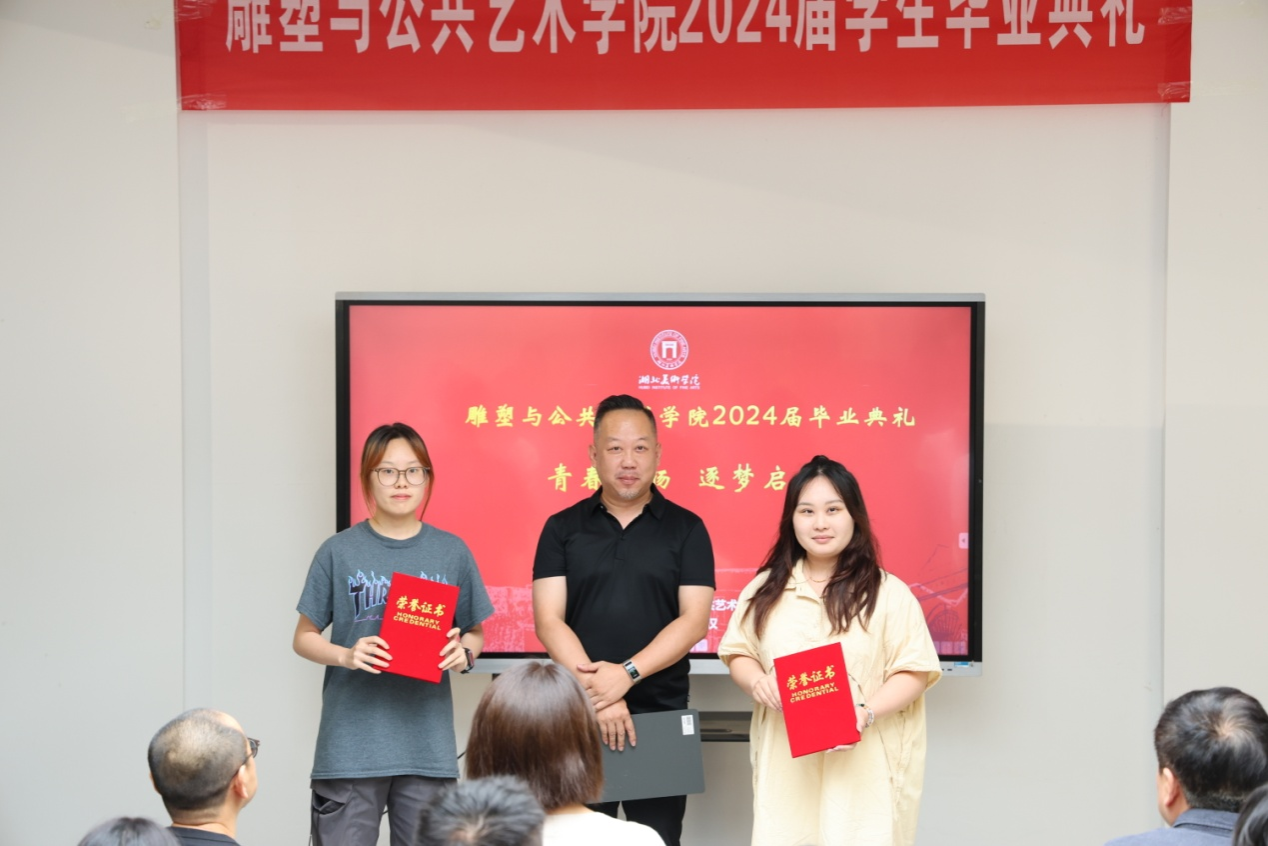 副经理谭玮宣读了获选优秀毕业作品名单,并和谢荪老师分别为雕塑和公共艺术专业的优秀毕业作品作者颁发了证书。