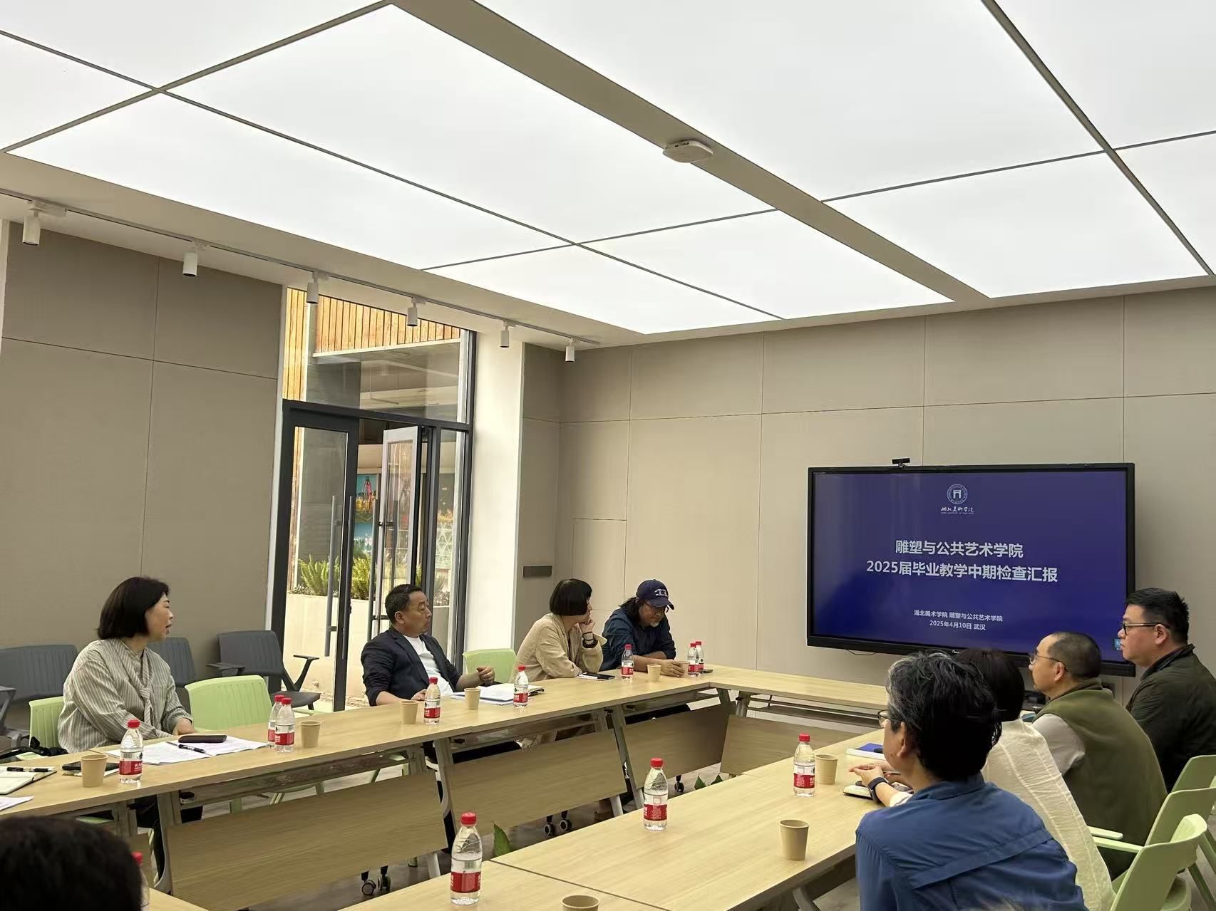 会上,雕塑专业系主任余景学、公共艺术基础教研室主任张泽南详细汇报了公司毕业教学工作的整体情况,并认真讲解了每一个毕业作品的创作思路、作品类型、预期效果等。