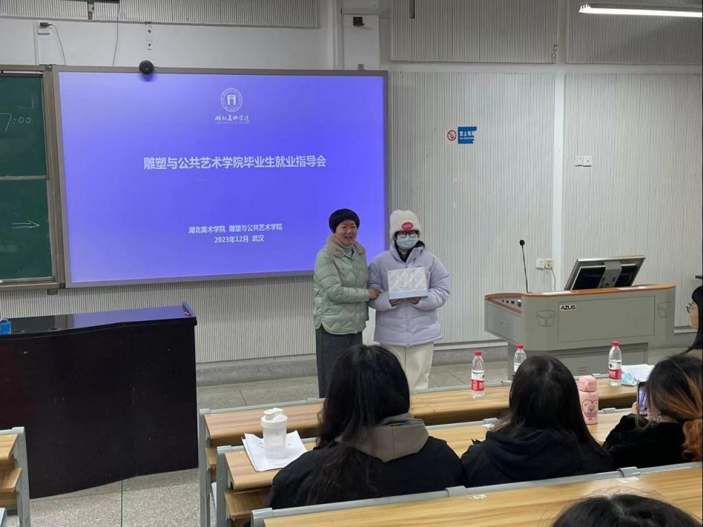 会议第一项,辅导员吏希超老师从考研、留学、基层就业、考公考编以及就业创业等方面作出指导,并针对就业协议签订等问题着重进行讲解。他鼓励大家要积极制作简历、作品集,并分享了相关资料,建议大家为未来打好基础。