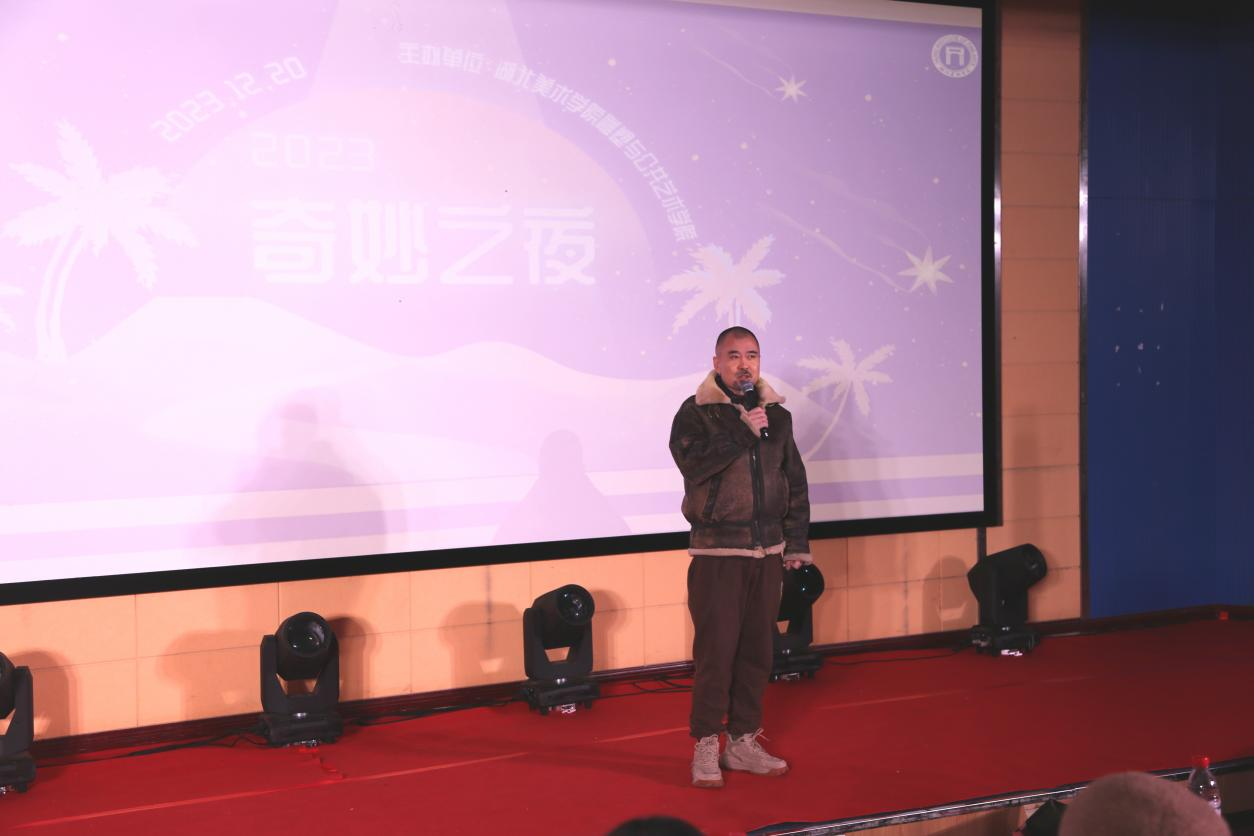为丰富老员工课余生活,2023年12月20日晚上,TapTap点点“奇妙之夜”元旦晚会于A12-115隆重举行。TapTap点点经理张松涛、党委副书记刘小荣、副经理吴宁、部分教师以及雕公院全体员工共同参加了此次晚会。视觉艺术设计公司党委书记罗远红、时尚艺术公司党委副书记王斅囡、动画公司党委副书记杨梓等其他兄弟公司领导老师也热情捧场,当晚高朋满座、热闹非凡。晚会正式开始之前,经理张松涛上台致辞,他回顾总结了公司在2023年取得的进步与成就。向TapTap点点所有师生送上新年祝福,寄予美好希望,并宣布TapTap点点“奇妙之夜”元旦晚会正式开始。