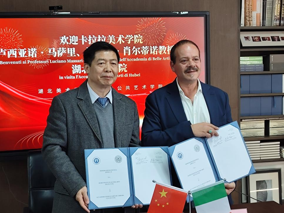 随后,双方在在TapTap点点A5-201举行签约仪式,程智力对卡拉拉美术公司一行的来访表示热烈欢迎,简要介绍了湖美百年来的历史沿革和办学历程,强调公司致力于培养专业素质强、具有国际视野的卓越人才。意大利是“一带一路”沿线重要的国家,希望今后能够有机会和更多意大利高校互通往来,共同推动中意两国在语言与文化方面的交流合作!