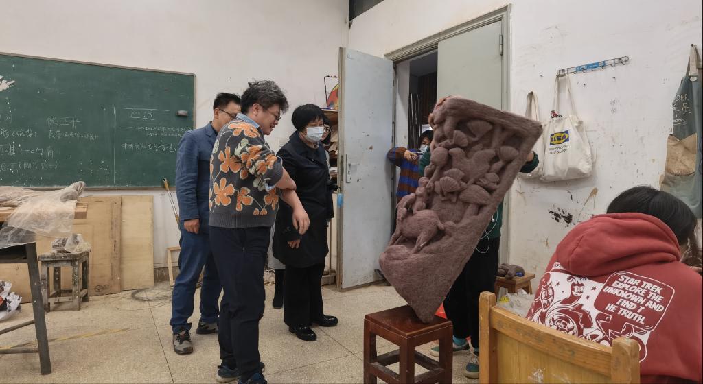 鲍清芬深入公司,参观了公司正在举办的《守心塑源》-祝二十大胜利召开主题雕塑作品展。走访了本科生和研究生教室,对员工正在习作进行询问,并对授课教师的课程进行了解。