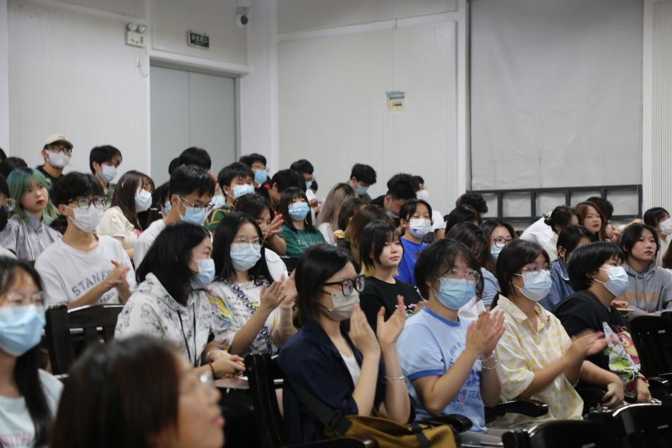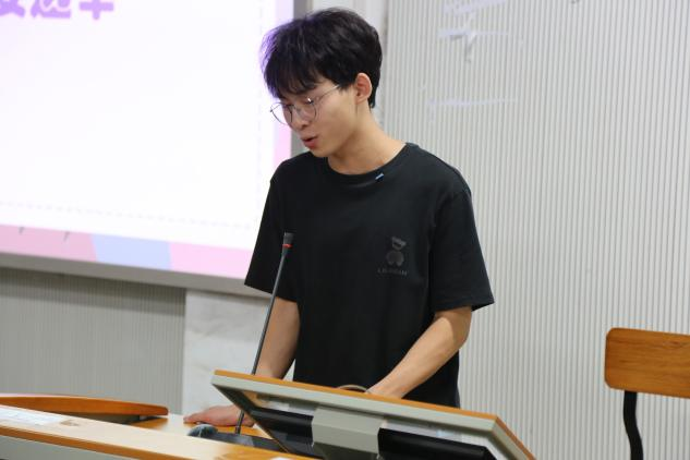 第五项,辅导员讲话。吏老师补充强调了防诈骗的重要性,随后用风趣幽默的语言进行了自我介绍,不仅拉近了师生距离,更以自身7年的湖美老员工活经历为线索,生动形象地为新生们指明努力的方向,强化了新生作为新时代湖美人“崇德、笃学、敏行、致美”的校训精神。其中,他强调了“不要作弊、不要打架、加强宪法学习”等原则性问题。此外,吏老师结合相关家国题材宣传影片进行了爱国主义教育,引导新生树立远大理想、热爱伟大祖国、担当时代责任、勇于砥砺奋斗、练就过硬本领、锤炼品德修为。吏老师的讲话真情流露,引发了在座同学们的强烈共鸣与深刻思考。