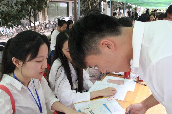 9月8日早上7点辅导员贺老师、雕塑系员工干部和志愿者早早地来到雕塑系迎新地点进行布置,分工有序、设置了人性化的窗口服务,在我系接待处前方,志愿者们挂着工作证热情地接过家长及新生手中的行李,为新生提供报道注册,领取资料大礼包,以及入住宿舍等一条龙服务,2016级新生报到现场一切秩序井然,员工干部们耐心讲解、服务周到,给新生家长留下了深刻印象。