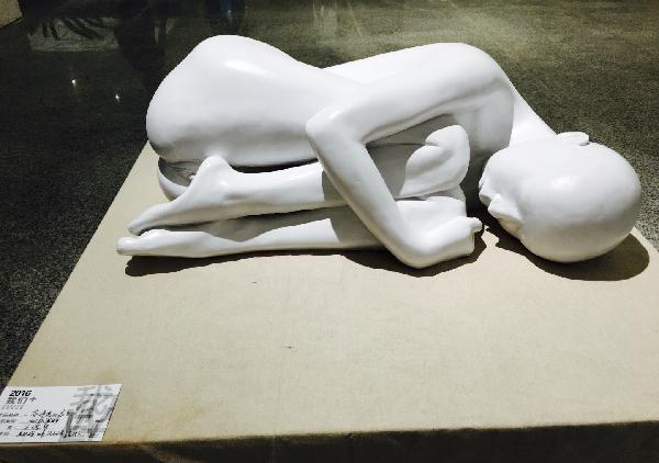 万德智的作品《带情绪的姿态》,一个人蜷缩着,给人一种没有安全感,孤独的形象,惟妙惟肖。