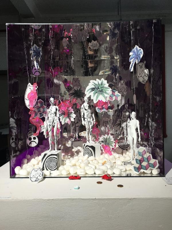 开幕式结束后,观众进入展厅参观。展出作品玲琅满目,面貌多样,语言丰富,造型精致。展示出她们对自然、社会和生活乃至艺术本身的认识与表达。有精美绝伦的茶具,各式各样的小动物和造型奇特的陶器。王淼的毕业创作作品《你在反乌托邦的未来住在一个垃圾场》吸引了不少观众的驻足。在一个玻璃箱子内作者装置了大大小小的人体和动物瓷器,热闹丰富烘托出一个乌托邦的假象。人与人之间的距离,地上的垃圾和稀少的植被告诉我们要好好爱护周围的人和物。作者并在箱外附上一张便条:箱外的瓷片可以随便拿,你可以用糖果和香烟交换,推荐一首歌《the chase》”