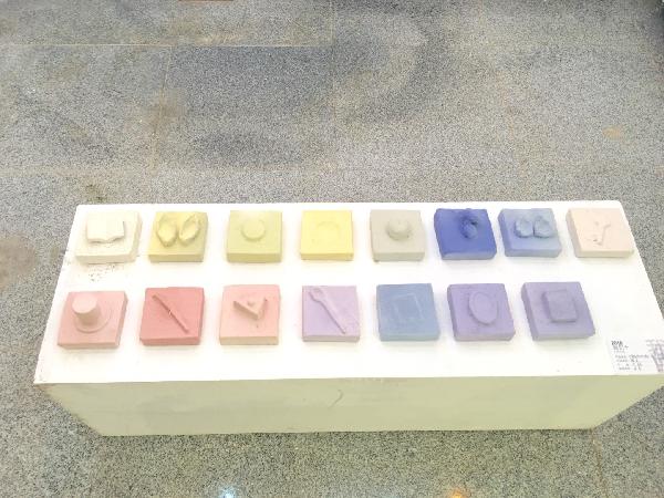 方虹同学的《余》。方虹同学做的各式各样的陶瓷鱼造型各异,象征年年有余