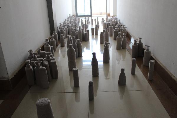 汪玲的作品《安全感》更是引起大家深刻的思考。在大量的大大小小的瓶子上缠上毛线,不与外界接触这难道就是所谓的安全感。