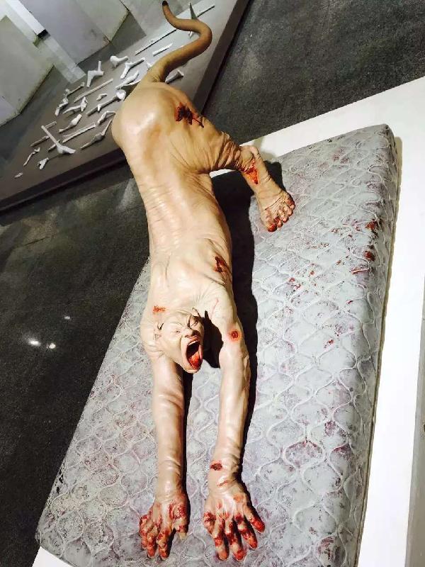 此次展览共展出雕塑作品三十余件,这些作品表现手法多样,创作风格各具特色。有严谨扎实的传统雕塑写实作品,也有创新大胆的匠心独具的现代抽象艺术作品。其中的《小李》.《我的爷爷》,因为其高度的写实和仿真触感被参观者们称赞,“我刚摸到的时候吓了一跳,太像皮肤的触感了”前来观看的同学如是说道。此外,展出的还有极具现代气息的玻璃样式制品,是由韩熙老师指导的员工作品,它们有的简洁大方,有的清新自然,有的细腻生动。一件《我以为你在深蓝的海,里当我浸湿了我所有的衣裳的时候,你却以离开了水面》尤为引人瞩目,用一大块玻璃,表面制成起伏的波浪,里面晕染绚丽的颜色,其上漂浮着一条小船,最让人眼前一亮的是,作者把玻璃中晕染的颜色当成一条鱼的身体,小船的后面鱼尾浮出水面,这件作品不仅有奇思妙想而且其极高的观赏性也吸引了不少人驻足观赏。此外,《梦魔》恐怖扭曲的人兽造型,《无题》精美的制作和作品所传达出恬静淡雅的气质,等等优秀的雕塑作品,都为大家提供了一次视觉的盛宴。