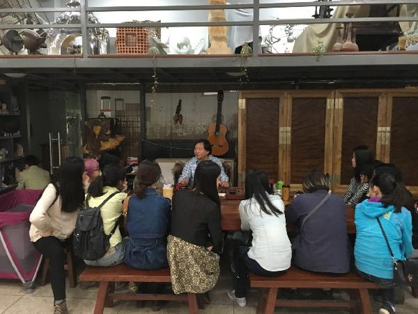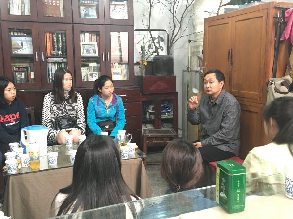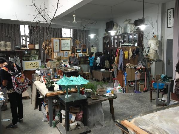 在参观黄邦雄老师工作室时,老师向我们介绍了部分作品创作的想法和故事,并且告诉同学们不管是做什么,画画或是创作心态都要放松,这样的状态才是最好的,要把有限的时间花在你最愿意奉献的事情上,不要为了做什么而做什么。同学们都认真的聆听,受益匪浅。紧接着,老师还谈到在学习上要有广泛的认知,,学会丰富自己。同时也要多看看不同于自己专业的书籍,学习是相通的,同样也可以学习到有不同的知识感受,并运用到自己的专业上。参观张卫老师工作室时,映入眼帘的就是老师的工作室里大量的老照片和树枝的点缀,这使工作室别有一番风味。张卫老师与同学们交流时谈到每个人要有艺术的敏锐性,自己的审美趣味和自己的个性。在同学们问到“当代艺术的标准,怎么把握创作作品的尺度”时,老师思考片刻,回答道;万变不离其宗,每个人要有自己的价值判断。并告诉大家学习的时候对于概念的学习很重要。要善于用哲学的方法看待生活看待创作。接下来是参观余景学老师工作室,老师向同学们简单的分析了如今雕塑的市场,使大家对于艺术的思考更多了一层角度。行进至余景学老师工作室时,老师除了跟大家答疑解惑外,还以自己当年的学习经历为例,告诫大家要努力钻研专业课程,只有学好本职,日后走上社会才能有更好的发展前景。下午四时,同学们告别老师,参观活动落下圆满的帷幕。