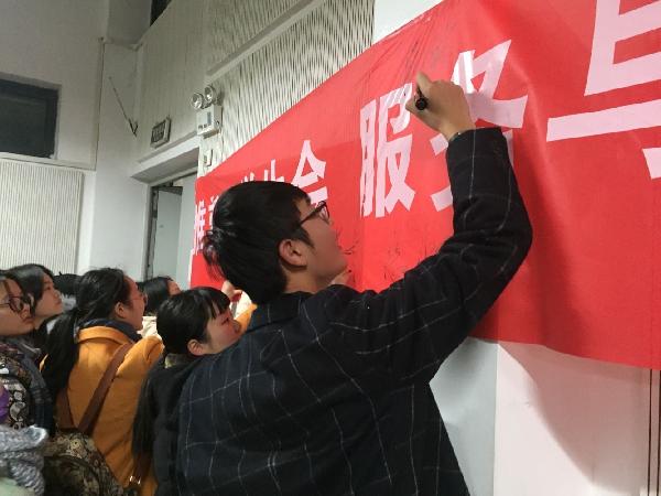 同学们在横幅上签字