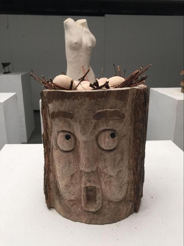 这次展出的木雕作品不仅工艺精细,而且在用途、题材等的表现上充分体现新一代的艺术潮流,独具时代性,实现了木雕艺术的价值。在这些形式多样的木雕作品中,有打磨圆润的木雕笑佛,有独具创意的木雕酒瓶,有严谨精细的女人体木雕,有古朴雅致的木雕树枝,有奇幻可爱的的木雕精灵,还有造型唯美的木质浮雕等。这些作品无不倾注着雕塑学子对木雕的热情,以及他们的聪明才智与精湛技艺。木头本是有生命之物,它古朴柔和的品质经雕塑学子妙手施艺而最大程度的发挥出来,被赋予新的涵义。他们在艺术的道路上不断探索,寻找属于自己的最佳表达方式,并用自身积累的专业技能加以塑造,致力于让木雕艺术焕发光彩。