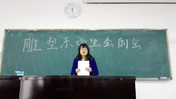 随后贺芳老师提出四月是公司的学风建设月,不仅要严格加强对课堂考勤的检查力度,而且通过学习交流活动来激发员工们的学习热情。所以,雕塑系决定举办图书漂流会来促进员工们的交流合作以及带动班级的学习氛围。会议最后,贺芳老师致总结辞,她在肯定了同学们在事务处理方面的态度和能力的同时,也指出员工干部在工作中的不足,并鼓励大家继续努力进步。