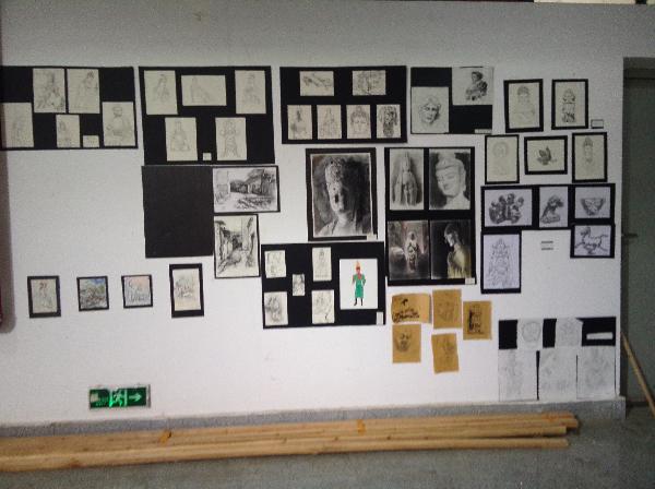 此次秋季展中展出的是12级、13级雕塑和陶艺专业员工在秋季写生课程中的优秀作品。参加此次采风展的作品中融汇了多种不同表现手法,包括油画、素描、水墨、水彩、钢笔画等。有生动形象的人物速写,有静穆严肃的佛教照像,有大气恢弘的西北风情,也有细致入微的工艺品白描,全都风格各异,画法精致细腻。另外,陶瓷专业的同学制作了一些精美的陶瓷作品,并挑选出一些更为优秀的作品举办了陶瓷展卖会,吸引广大师生前来观赏购买,博得一致好评。