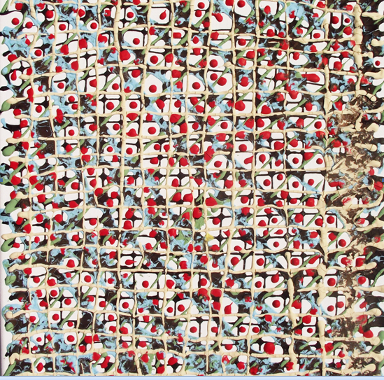 石开元(以下简称石):首先我把它当做一个城市的概念,象征着一个城市点。其次也是把它作为一种尝试,运用各种材料在画面中进行探索。比如,咖啡、烟灰、奶茶、茶水等等。