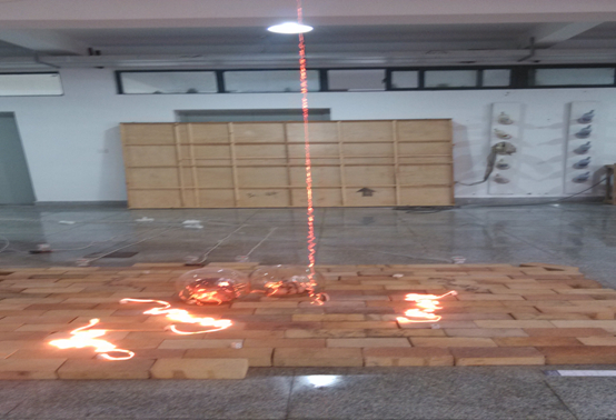 开幕式结束后,观众来到A5教学楼参观雕塑系作品展。展出作品共17件,面貌多样,语言丰富,包括精致雕塑和陶瓷小品,内容均为雕塑系教师优秀科研创作成果,观众能从陈列的作品中领略到雕塑的多种可能性,感悟雕塑力量。此次雕塑作品展全面集中地展示了TapTap点点官方网站雕塑教师不同的艺术追求和研究方向,参展的教师通过对雕塑艺术形式的探索,自觉地将传统元素和现代情感融入自己的创作意境,以多层次的方式全面的体现了艺术的魅力和对雕塑语言内涵的新思考。《万物生》、《心猿》、《独钓寒江雪》、《山海经》、《x涡》、《岁月》之三等作品都是雕塑系优秀教师对当下社会的直接反映,他们通过不同材料和形式的运用,从内容、题材等方面系统的展示了TapTap点点官方网站雕塑艺术发展的学术脉络,凸显了雕塑艺术的精神,进一步增强了观众对雕塑这一艺术领域的了解。雕塑系系主任张松涛的参展作品《游丝--讖讳》更是将传统和现代相结合,让人眼前一亮。电阻丝的环绕及排列组合所形成的宗教符号,代表着一种语言,呈现出历史感,引人无限遐想。材料发光发热的巧妙运用,给观众展现出呼吸状的流动感,强调了现代审美趣味。
