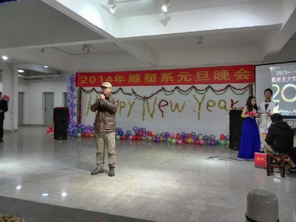 晚会第一项是雕塑系系主任张松涛致词,主任向大家带来新年慰问和祝福,并鼓励雕塑系蓬勃发展。