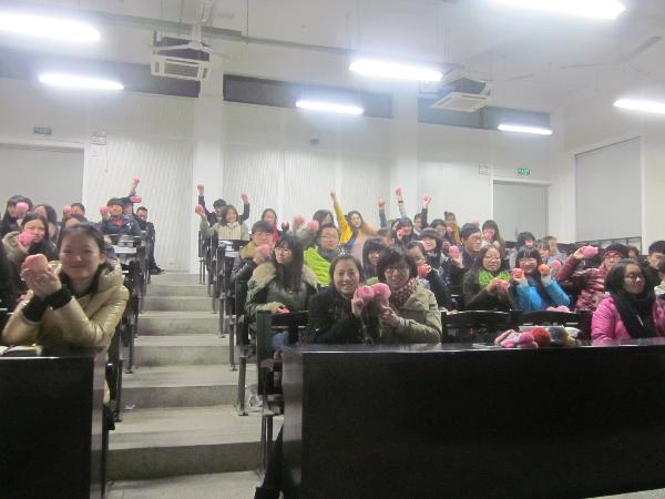 最后,陈丹老师致辞。她全面总结了我系2013年度员工会的工作,对成员们的表现给予了高度的赞扬,表达了内心的欣慰和自豪感,从而增强了成员们的工作热情与信心。表彰大会在全体成员举起手中的苹果,拍照留念的欢呼声中拉下了帷幕。