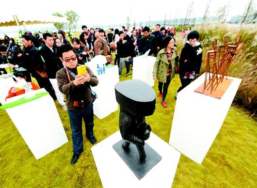 新闻网讯(通讯员:喻婕)11月10日,筑梦时间——东湖2013全国青年雕塑家邀请赛优秀作品展在华侨城开幕,历时两个多月的“悬念”终于在东湖岸边破解。《大吸管》、《坐看风景》、《等待》等10件作品胜出,我系部分同学也参加了此次展览。