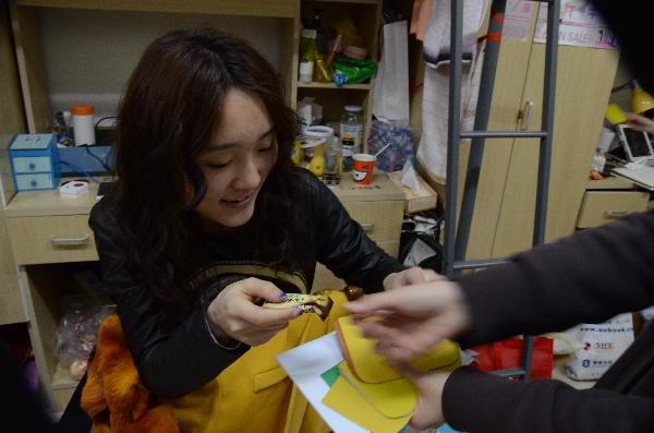 图三:女生们收到礼物时都不禁露出了开心的笑容