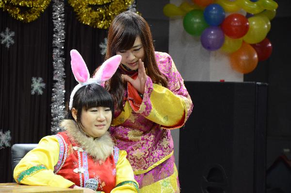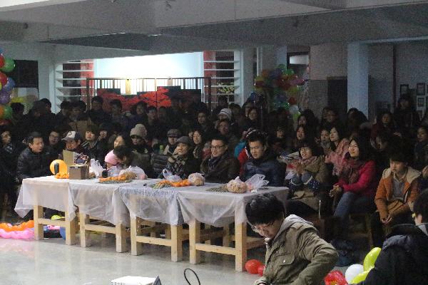 新闻网讯(通讯员 谢程紫君)为了庆祝过去一年的收获,迎接新的一年。2012年12月28日下午5:30,由我系举办的2013年雕塑系元旦晚会在A5教学楼隆重举行。系党总支副书记陈美玲、辅导员陈丹、老师万里驰、李冰、魏传涛、徐鑫桦前来观赏晚会,并吸引了众多同学前来观看精彩纷呈的节目。本次晚会主要以表演和游戏互动两个部分穿插进行,并分别由喻婕、邓婧、刘睿韬、德川四位同学共同主持。