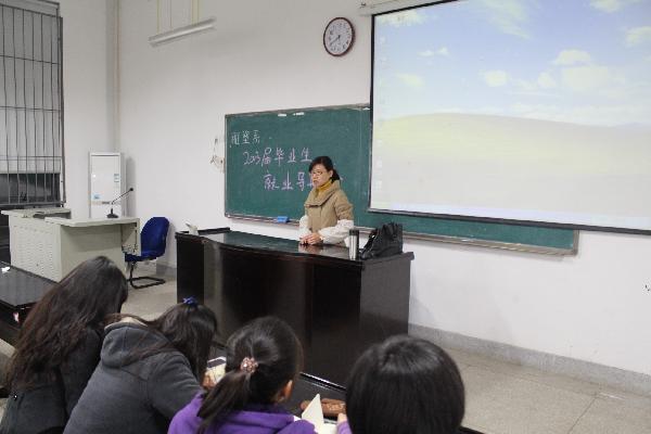 新闻网讯(通讯员潘旖妮)为了实现老员工顺利就业、树立正确地就业观和职业生涯规划。2012年12月3日下午5:30,我系辅导员陈丹在A12教学楼109教室为2013届毕业生做了一场生动的就业导航会。