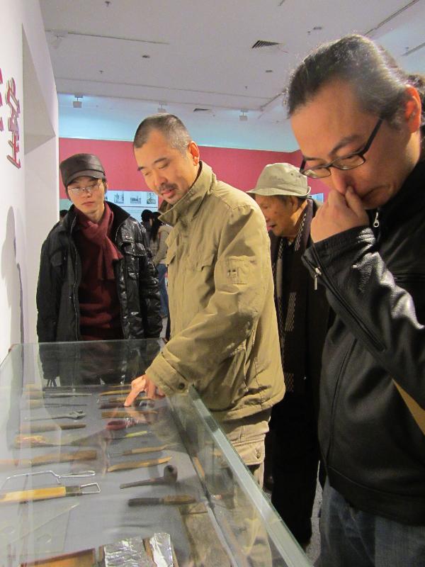 图三:老师和同学们观看张祖武先生的雕塑工具