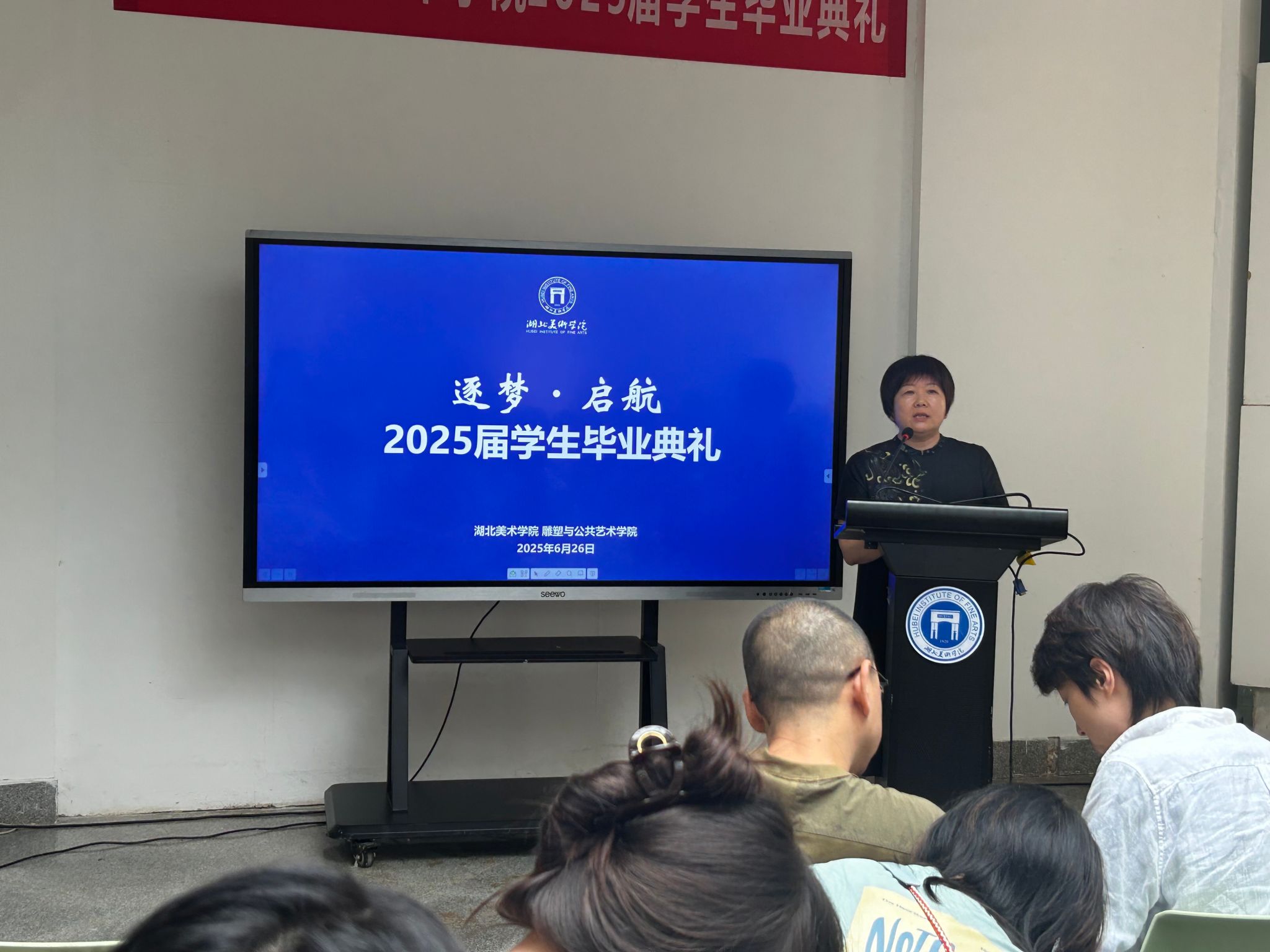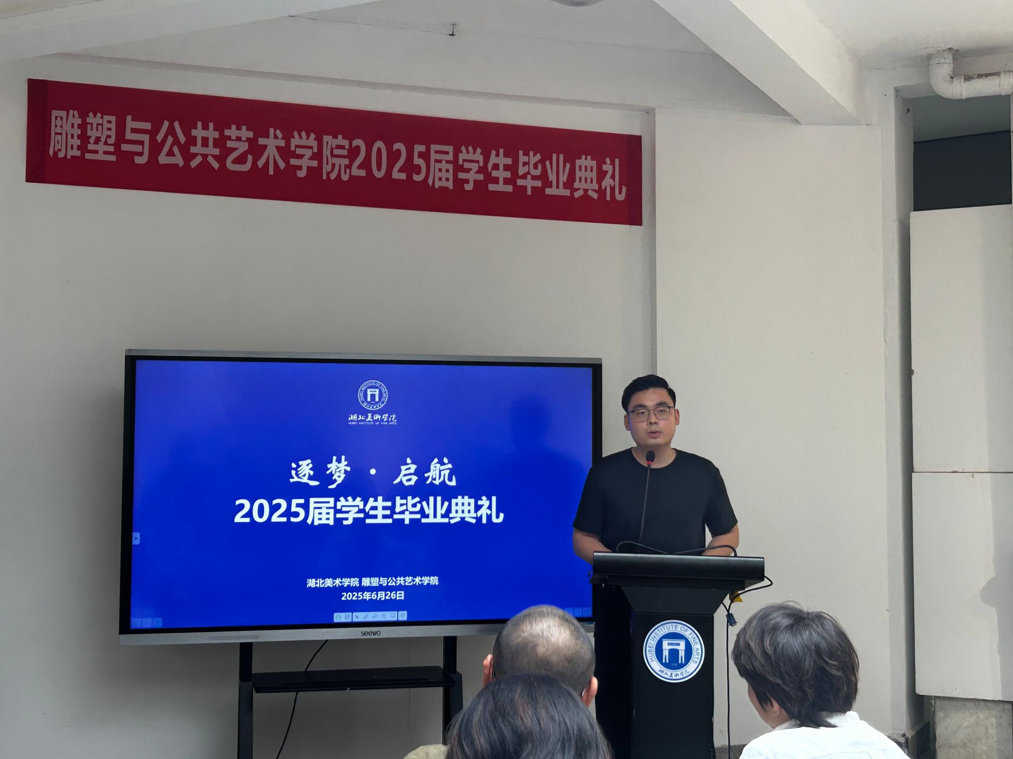 杜嘉豪同学作为优秀毕业生代表,深情回顾了五年雕塑专业学习的点滴成长,并寄语全体毕业生永葆艺术初心,以毕业为起点继续追寻创作理想。