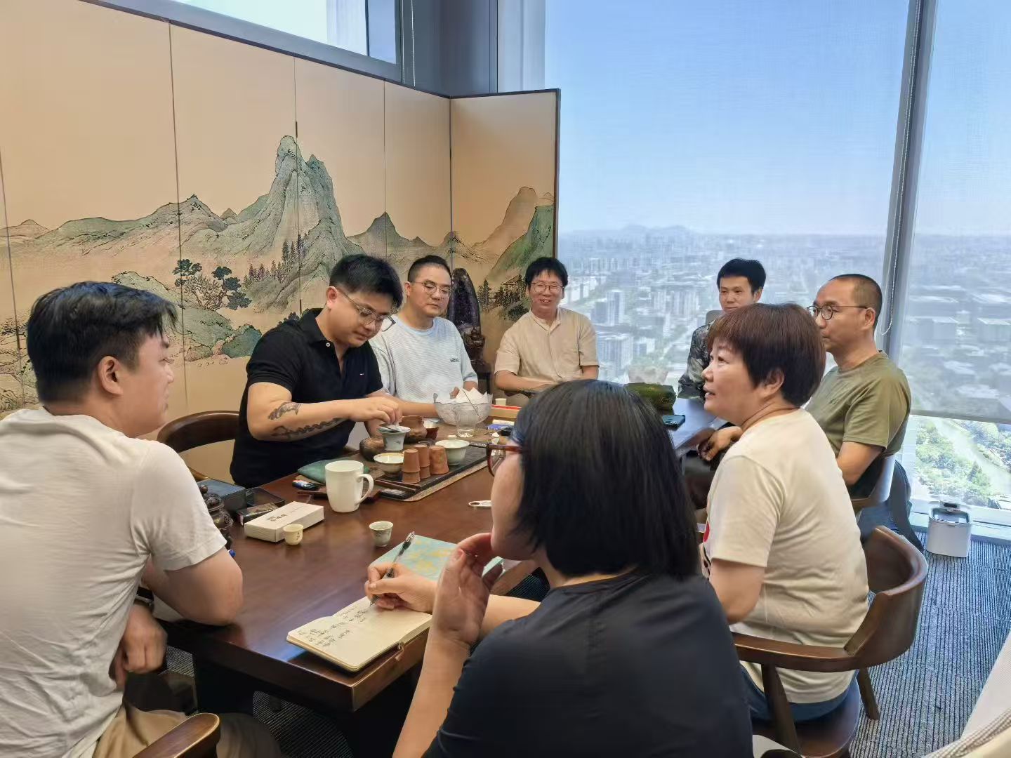 在新疆迈坦科技有限公司杭州总部,公司一行对企业支持公司建设与发展表示衷心感谢,并就IP设计、公共艺术中的运用项目合作等议题展开了深入交流。