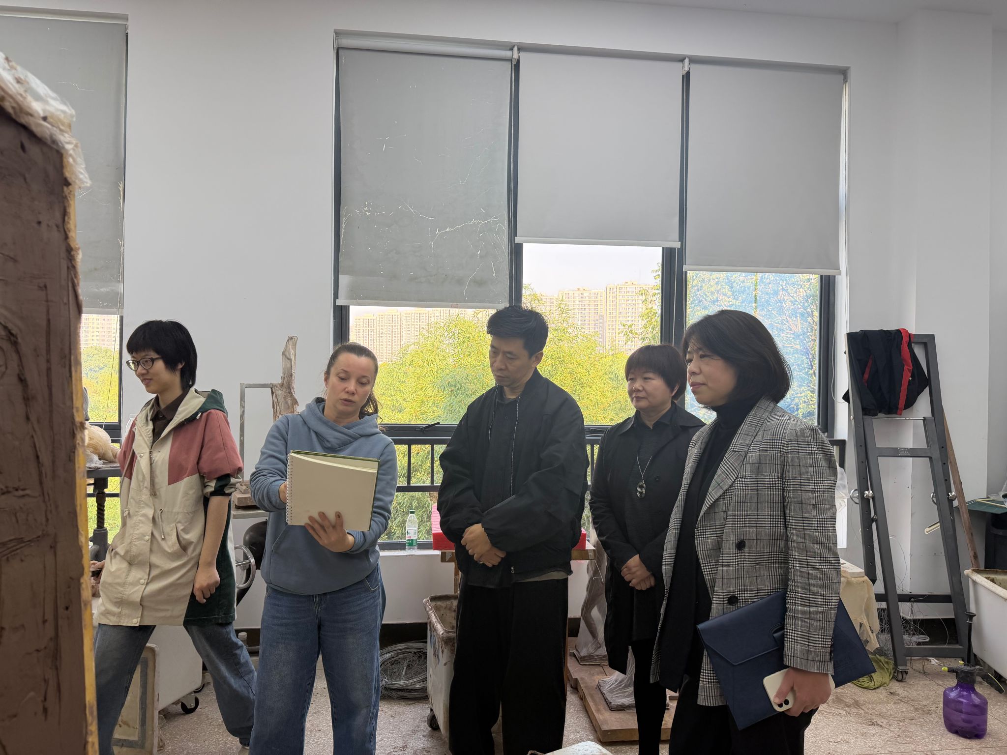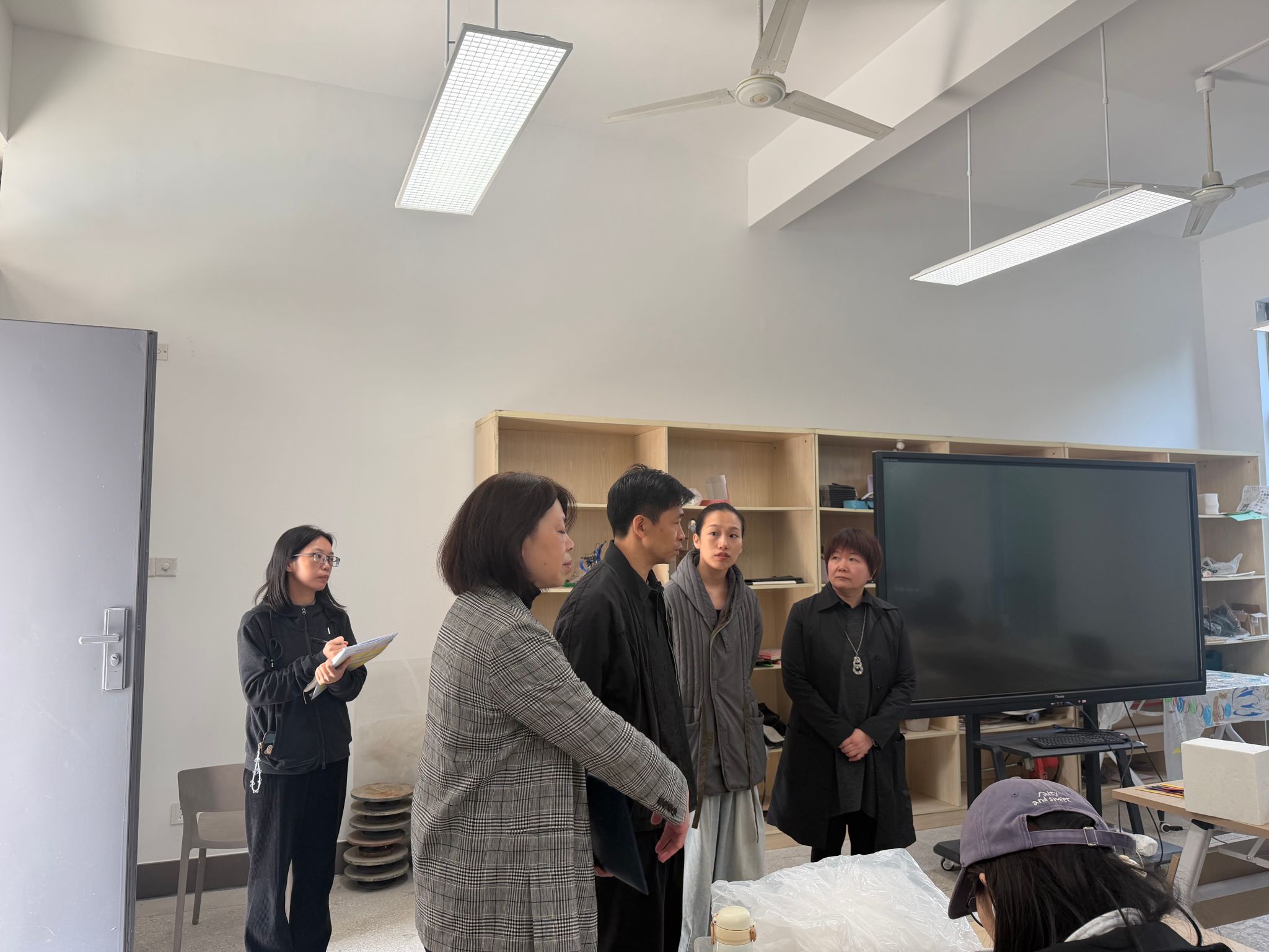 期间,曹丹细致观摩了壁画艺术研习、材料工艺创作、泥塑等课程,认真听取了各任课教师关于本学期教学安排、课程建设、实践教学成果等内容,对公司教师有关教学改革的建议进行了详细解答。