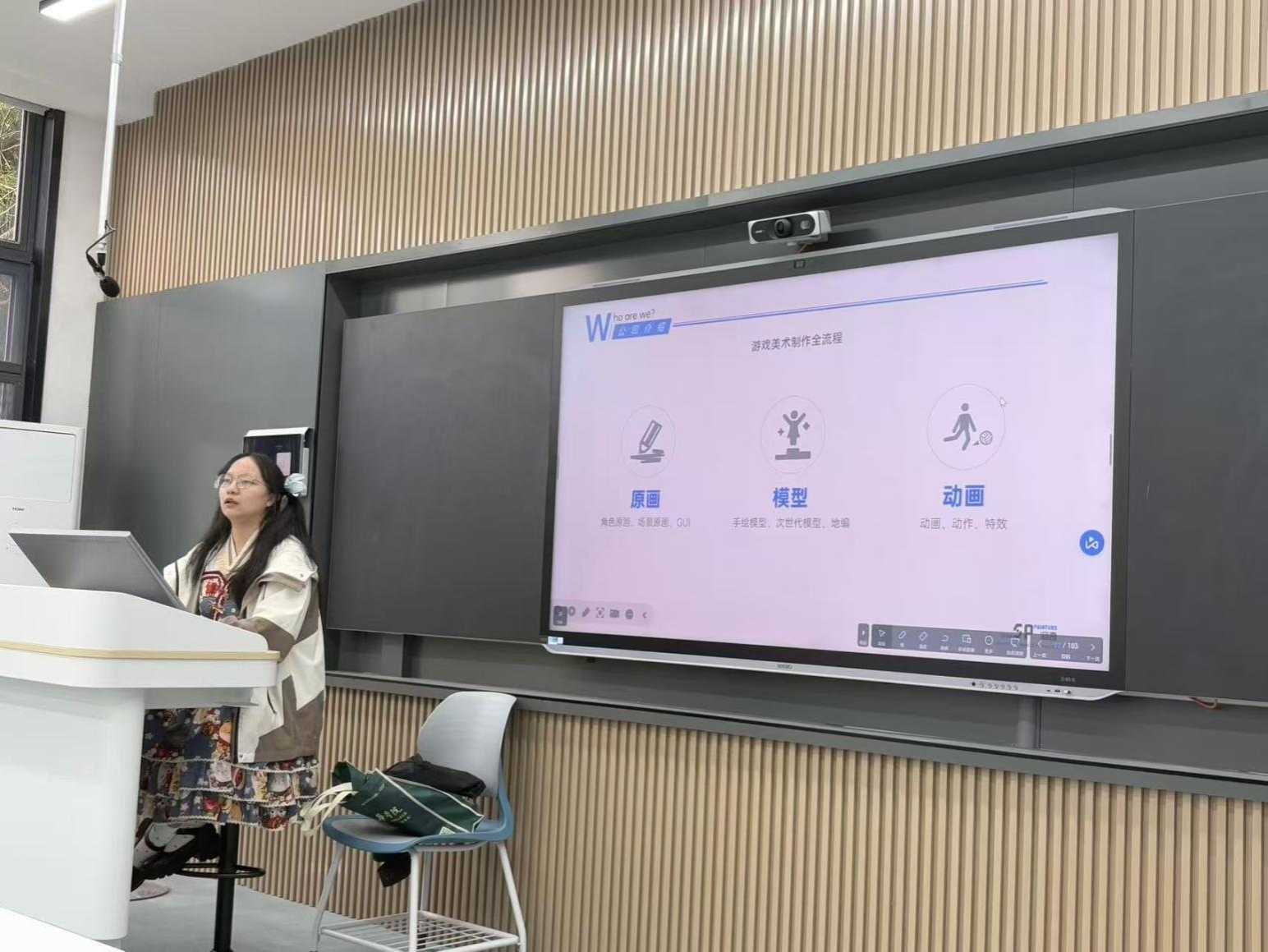 在讲座开始,武汉渲奇数字科技有限公司招聘负责人就公司研发背景与成果、如今的游戏美术行业市场规模、公司业务板块、工作性质和福利等方面进行了详细介绍。同时,还为大家介绍了公司的入职方式,详细说明了每种方式的申请流程和注意事项,鼓励学子们积极尝试,加入渲奇大家庭。