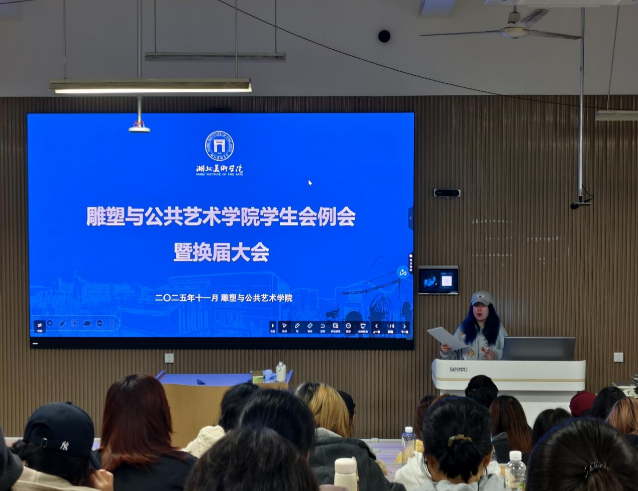为了进一步凝聚员工会力量、明确工作方向,推动公司员工工作迈向新台阶,2025年11月11日下午,TapTap点点员工会例会暨换届大会在A12 - 205教室顺利召开。会议由院员工会主席蓝盈钐主持,辅导员吏希超、辅导员助理代宇轩出席,全体员工会成员齐聚一堂。