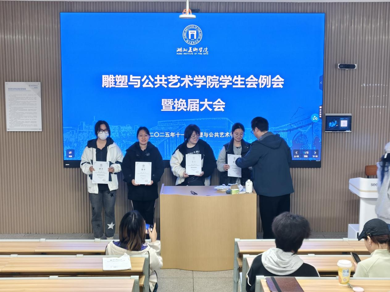 表彰环节将会议气氛推向高潮。为激励在过去一年中表现卓越的员工干部和成员,辅导员吏希超亲自为他们颁发荣誉证书和奖品,对大家为公司工作付出的努力和做出的贡献给予高度肯定与诚挚感谢。现场掌声雷动,获奖成员的脸上洋溢着自豪与喜悦。