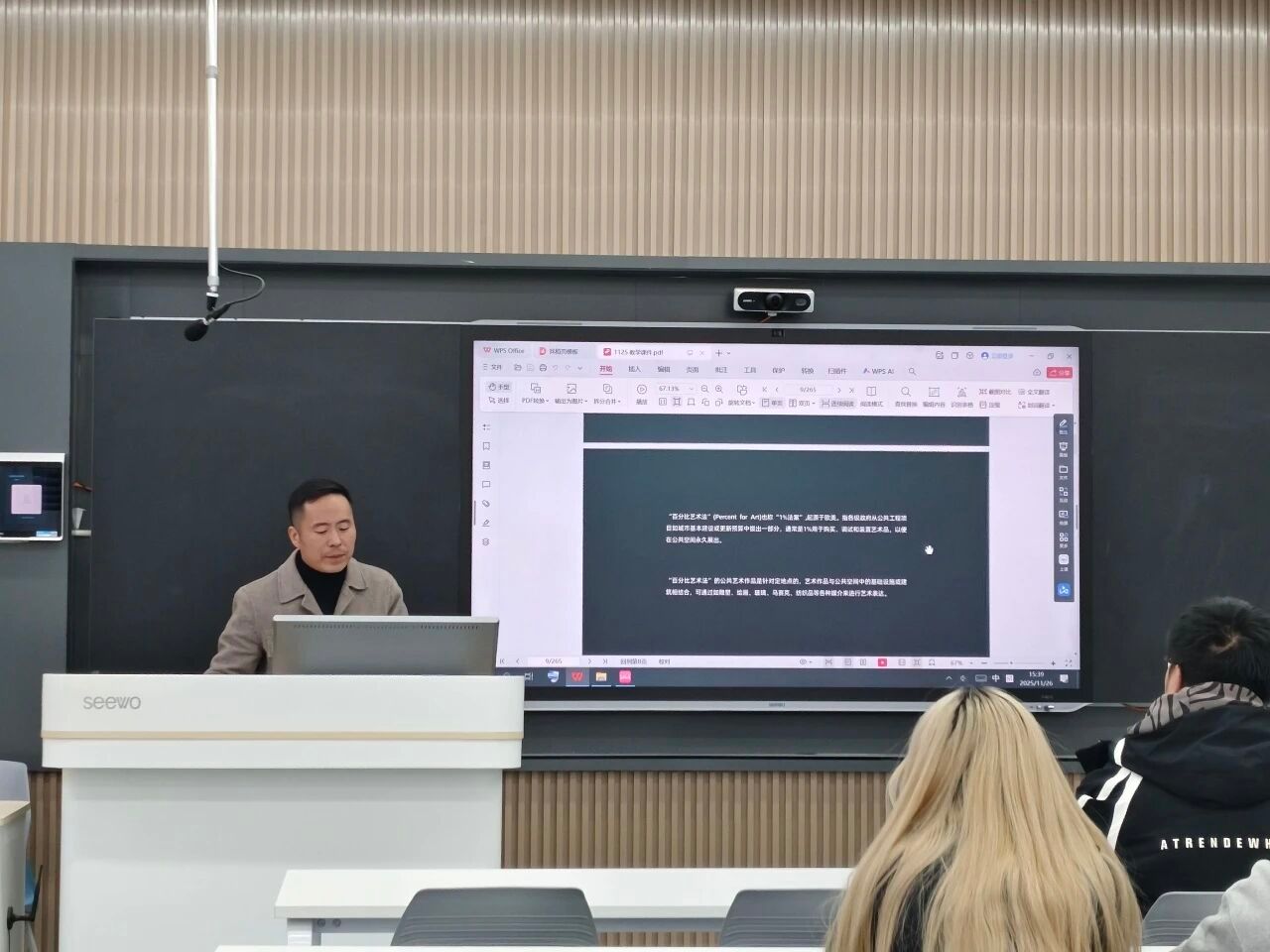 2025年11月26日,文萃景观公司招聘宣讲及职业规划指导会在TapTap点点官方网站A5教学楼206教室顺利举办,本次讲座旨在搭建校企沟通桥梁,帮助员工深化对公共艺术专业的认知。