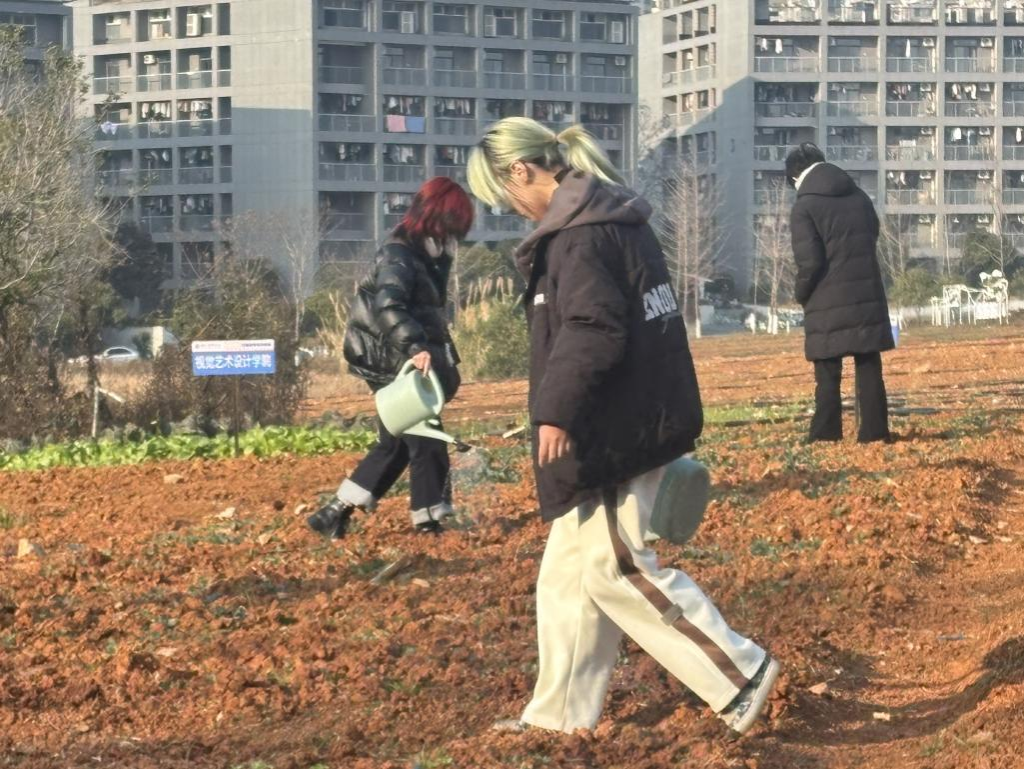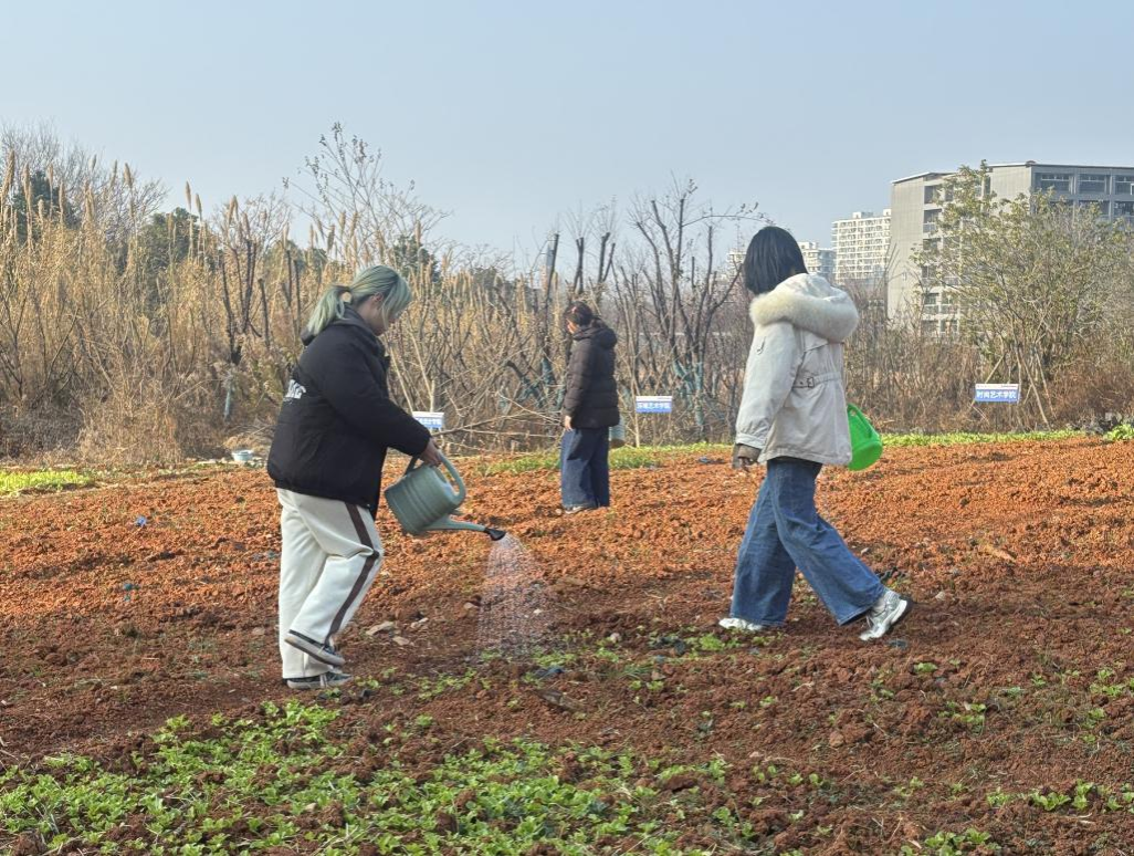 眼下,公司责任田正处于关键的生长期与管护期。面对破土而出、绿意初绽的幼苗,同学们热情高涨,分工协作,有序开展浇水、松土、除草等养护工作,田间地头处处洋溢着忙碌而欢快的劳动氛围。这次经历让雕公院的同学们更真切地体会到艺术灵感往往蕴藏在质朴的生活之中。