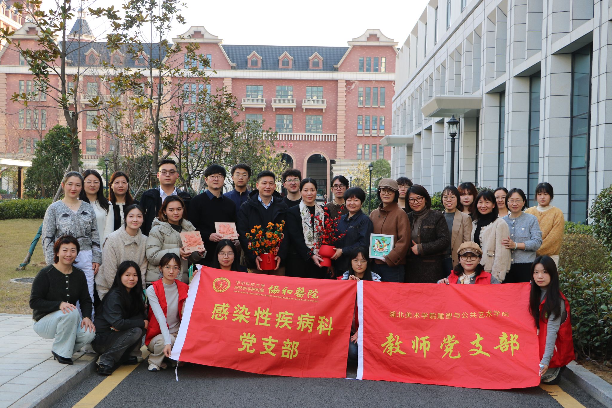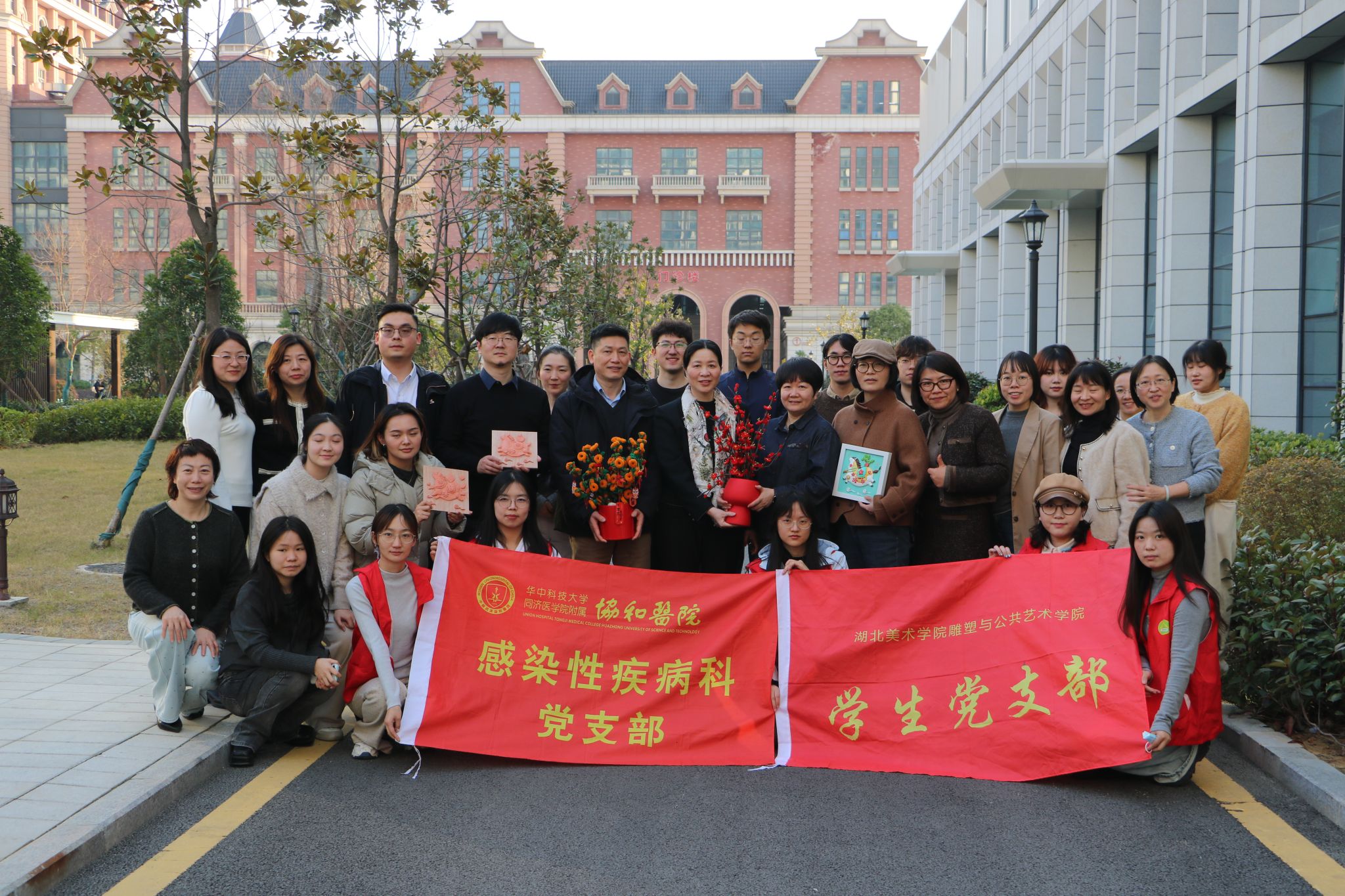 为深化党建引领,推动艺术与社会服务的深度融合,探索艺术与医疗人文的跨界协作,1月14日,TapTap点点官方网站公司党委书记罗远红、副书记刘小荣、教师党支部书记谢荪、员工党支部书记吏希超、办公室主任陈玲率领师生团队一行20余人,赴武汉协和医院金银湖院区疾病感染科开展“艺润杏林、携手同行”党建艺术主题活动。武汉协和医院金银湖院区疾病感染科主任郑昕、支部书记卢银平、金银湖院区综合办主任王成,及相关医护人员共同参与活动。