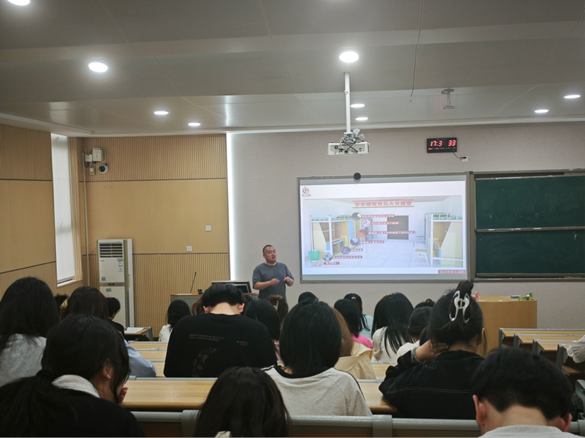 此外,保卫处处长徐希锋还深入讲解了火灾的基本概念,提醒同学们要关注可燃物的科学放置,点火源的合理使用,以及如何及时隔绝助燃剂,防止火灾的发生。