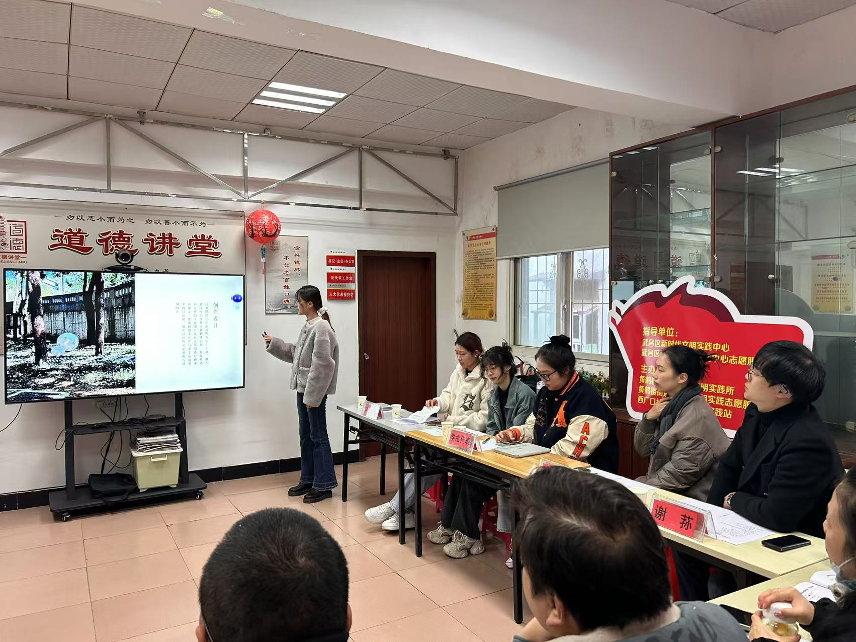 2024年11月27日,公司公共艺术专业谢荪和乐黎老师两位老师受邀带领公共艺术专业2022级本科生4人和研究生2人,前往武昌区西厂口社区参加"可爱城市,艺聚西厂"青年议事会会议。