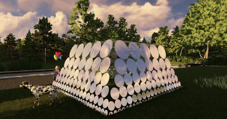 设计方案以黄鹤楼社区的地图为主题,融入武汉标志性景点黄鹤楼元素,通过展示社区地图,旨在强调社区作为城市基本单元的重要性,以及它与黄鹤楼这一地标建筑在地理与文化层面上的紧密关联。在重点景点区设计镂空处理,一方面增加了装置的层次感与通透感,使其在视觉上更具吸引力;另一方面,这些镂空区域可供行人穿梭其中,或是透过镂空处更直观地观察内部的社区地图,从而在不经意间加深对社区的了解。
