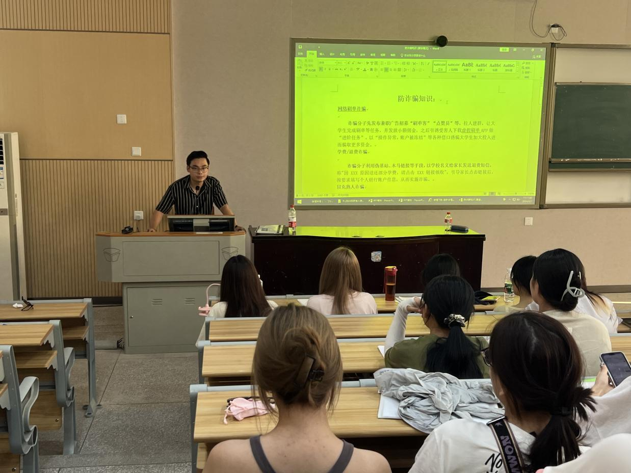 此次新生入学教育会内容丰富,形式多样,旨在为新生们未来的学习生活保驾护航。首先,辅导员吏希超用PPT的形式向各位新生介绍了自己。班会环节,在辅导员吏希超生动有趣的讲解和引导下,从新生心理测评到入学教育,从安全教育到防诈骗教育,每一项内容都为新生的成长之路铺设坚实的基石。特别是爱国主义教育、安全教育、反诈教育,是本次见面会的重中之重,辅导员吏希超通过播放视频、举例说明等方式,让新生们深刻体会到肩负的时代使命和自我保护的重要性。