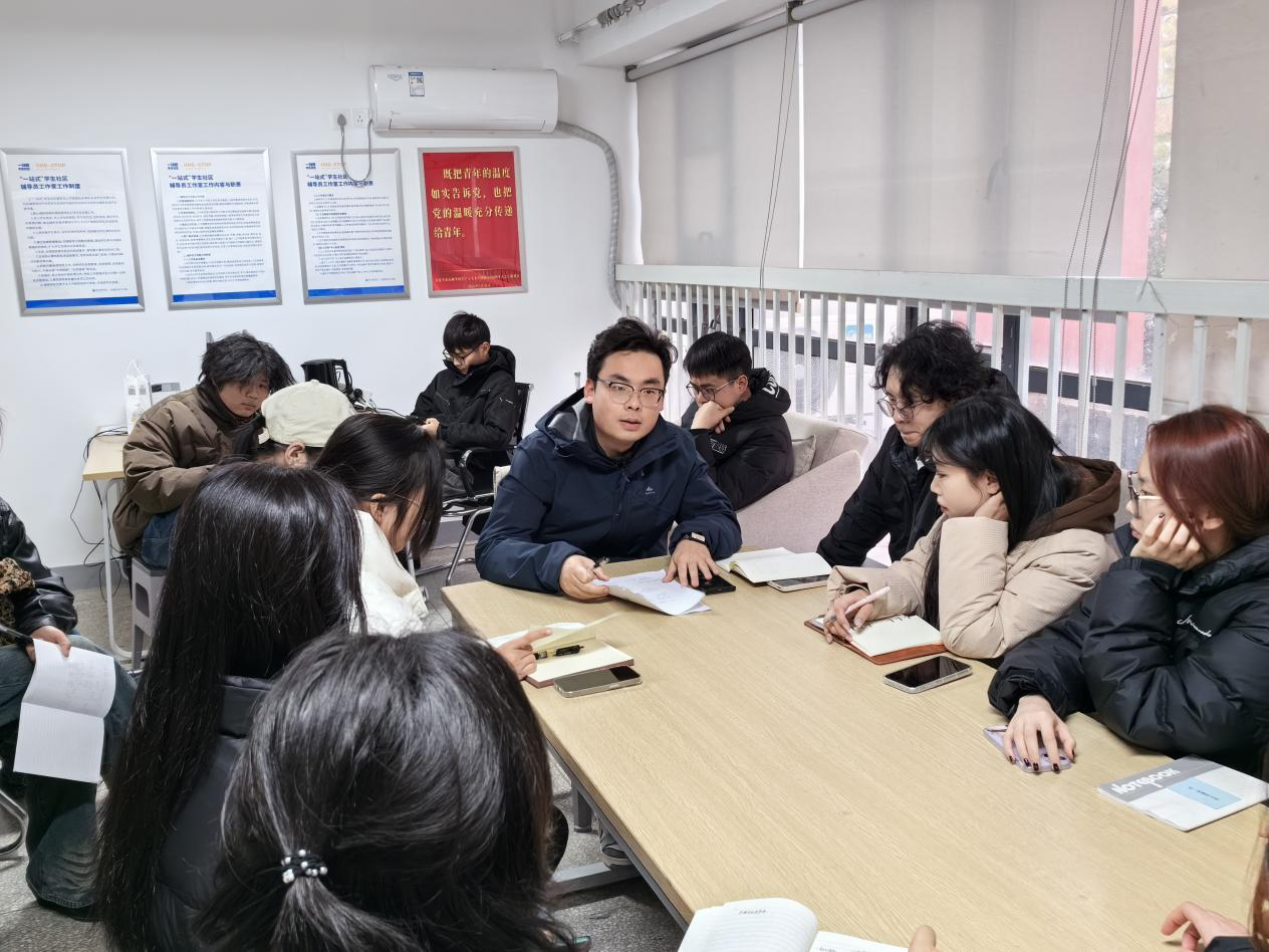 例会在雕公院一站式员工社区举行,由辅导员吏希超老师主持。吏老师首先对各位班长的辛勤工作表示了感谢,对上一学期大家的工作成果表示肯定,并强调了班长在公司管理中的重要作用。他提到:“班长是连接员工与公司的桥梁,你们的工作对于公司的和谐发展至关重要。”