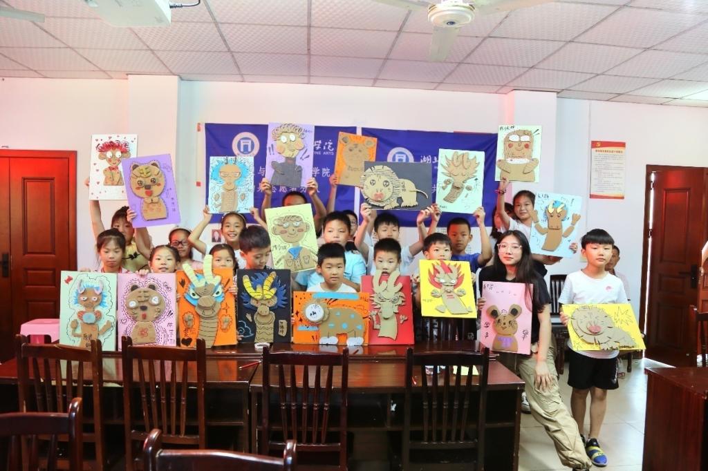 实践活动内容既有安全卫生、文明礼仪、感恩教育等传统文化的教育,也有绘画、舞蹈、朗诵、手工制作等文娱课程讲授,精彩有趣的课程为山区孩子们暑期生活增添了色彩,更为他们种下了希望的种子。美育课堂安排了花灯制作课、创意面具课、丝网花制作课、超轻粘土小羊与画框课及纸皮画等课程,引导孩子们将日常生活中的所见所闻、所思所想用艺术的语言进行大胆的表达,拓宽了孩子们的审美边界与创作思维; “为群众塑像绘像”活动体现 了艺术为人民服务的初心,队员们边塑像边谈心了解民风民情,活动深受群众喜欢,一时间欢声笑语不断;文化墙绘活动为乡村文化建设服务,通过对村委会的楼道墙面进行美化,营造了美好宁静的乡村文化氛围;实践队还实地走访武昌艺专在陡石村办学旧址五十三梯,并与当地居民深度交谈,了解武昌艺专在当地的文化影响;活动期间,队员们还参观红岩革命纪念馆及中共中央南方局暨八路军驻重庆办事处旧址,感受先辈们光辉的奋斗历程和不折不挠的革命精神,红岩精神;志愿者在社区还积极参与卫生环境建设,开展道路清扫活动,用实际行动温暖民心。