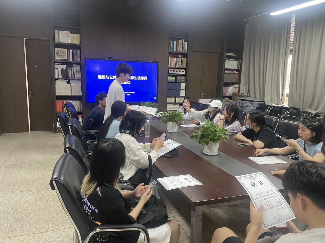 会上,曹葶首先向雕塑与公共艺术公司的员工信息员们颁发了聘书,并讲解了员工信息员岗位的相关职责,同时也强调了评教工作的重要性,希望员工信息员们今后能尽职尽责的完成相关工作。