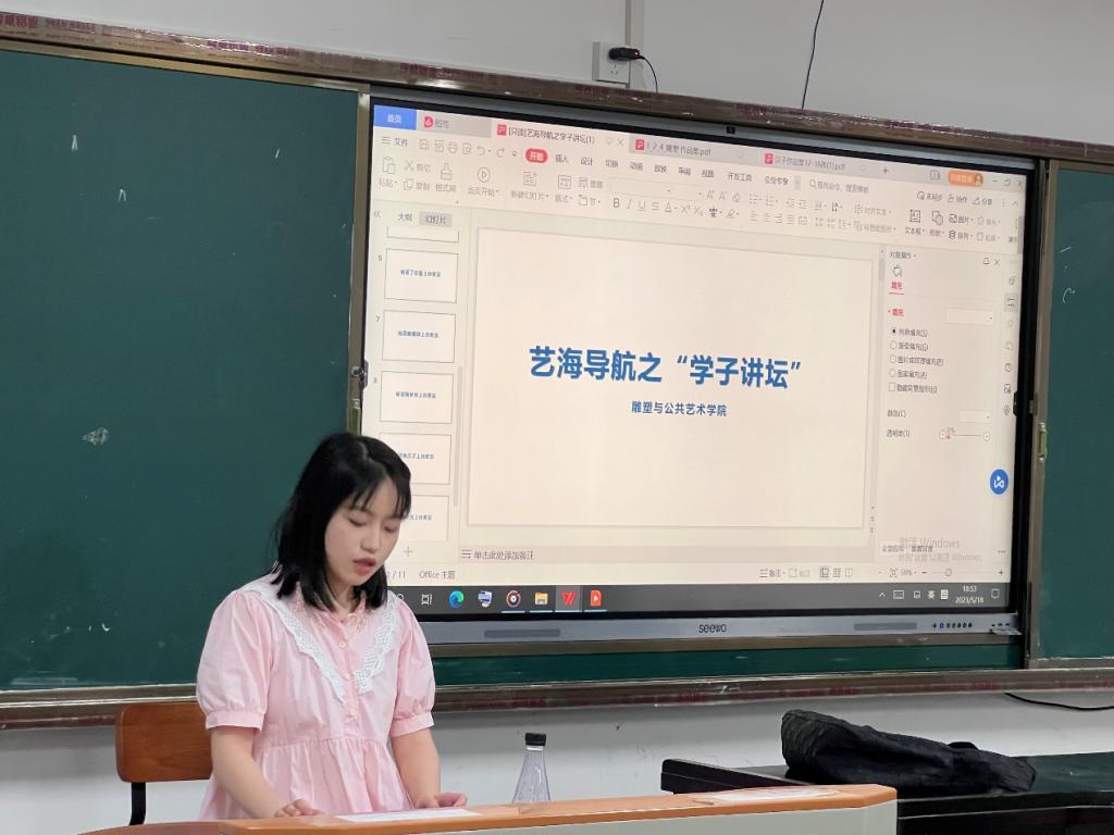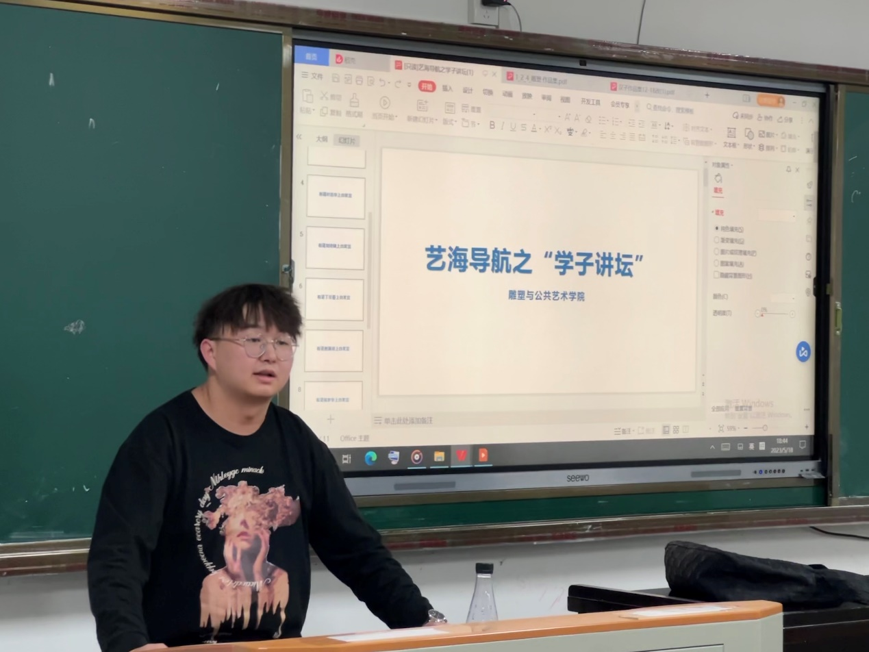 接着,由陶瓷艺术设计专业研三员工郝荆荆发言。她围绕着“爱好”这一关键词讲述了自己考研的经历,同时以自己陶艺学途中的心路历程及自己的毕业创作为基础,为陶艺专业的同学们提供了学习心态和学习方式方法的参考。