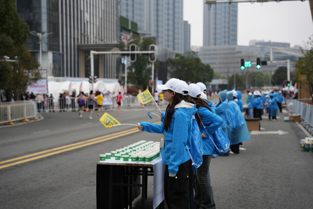 他们身穿统一的志愿者服装,手持指示牌,为选手们指引路线,确保选手们能够顺利完赛。