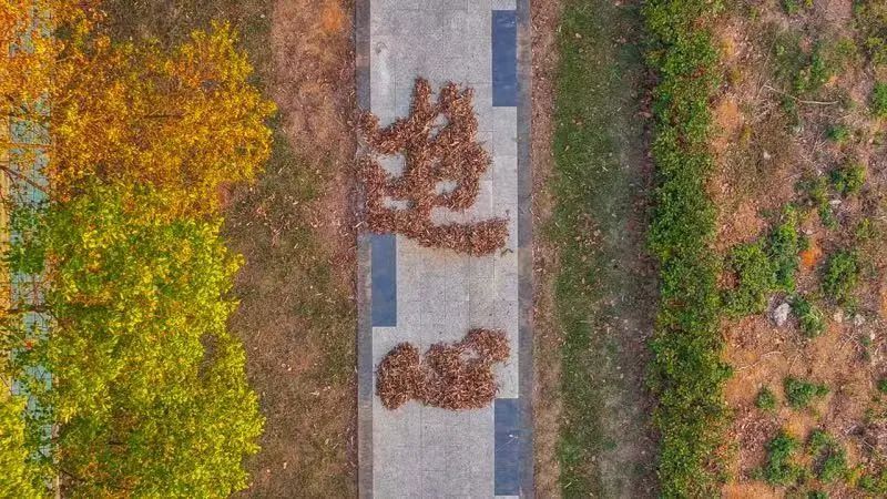 落叶书法艺术季确实在公共艺术的战略领域和材料上面,开启了一个落叶新的形式。过去,落叶在中国传统文化中承载着丰富的象征意义,关于落叶的文化演绎丰富多彩,激发了无数的想象。