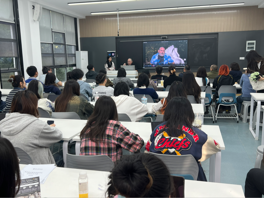 Robert教授通过大屏幕展示了自制作和AI制作两个版本的动画,记录了他在制作作品过程中的思考过程。此外,Robert教授还为大家介绍了部分美国当代的数字雕塑家及其作品,使师生们得以窥见国际视野下的数字雕塑艺术现状及未来发展方向。