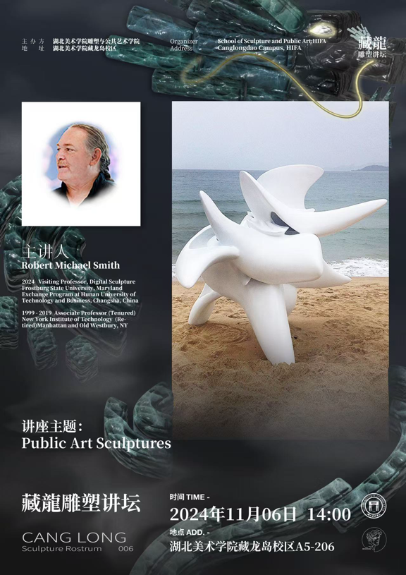 讲座伊始,Robert Michael Smith教授以自身经历为切入点,讲述了自己在雕塑艺术道路上对传统与现代未来结合的探索,他分享了自己如何将科技生物元素融入雕塑创作中的过程,展示了在艺术创作中利用新技术所能够产生的惊喜和新的视觉效果。