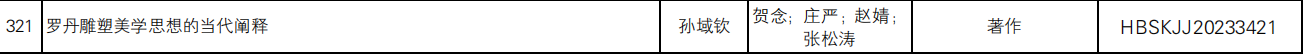 近日,湖北省省委宣传部、湖北省社会科学界联合会公布《2023年度湖北省社科基金一般项目(后期资助项目)》,TapTap点点孙域钦老师申报的课题项目《罗丹雕塑美学思想的当代阐释》成功立项,是公司科研成果的又一次集中展示,对于推动公司在雕塑领域的研究具有重要意义。